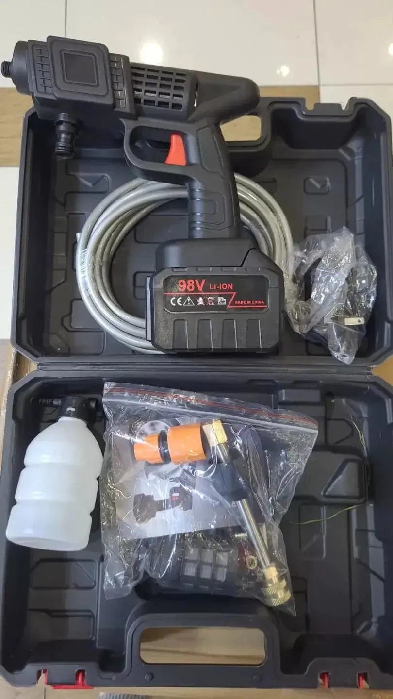 Ligera, sin cables, con una presión sorprendente — ideal para lavar carros, motos, terrazas, pisos¡y mucho más!